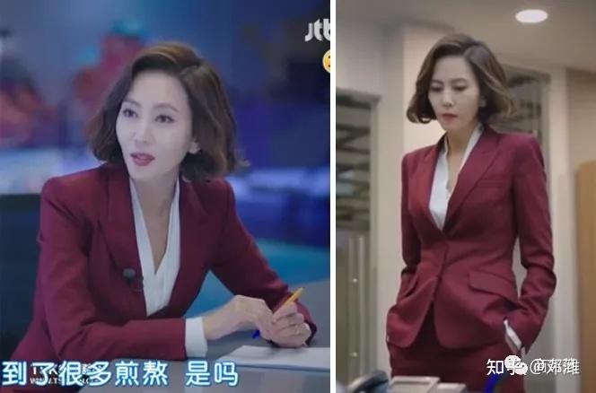 当然也能够反其道而行之,接纳外浅内深的搭配。韩国KBS《9点新闻》的女主播李昭政,从一线资深记者升任当家主播,多年的职场历练让她很有气场,而西拆的翘肩也很好地陪衬了那一点。
