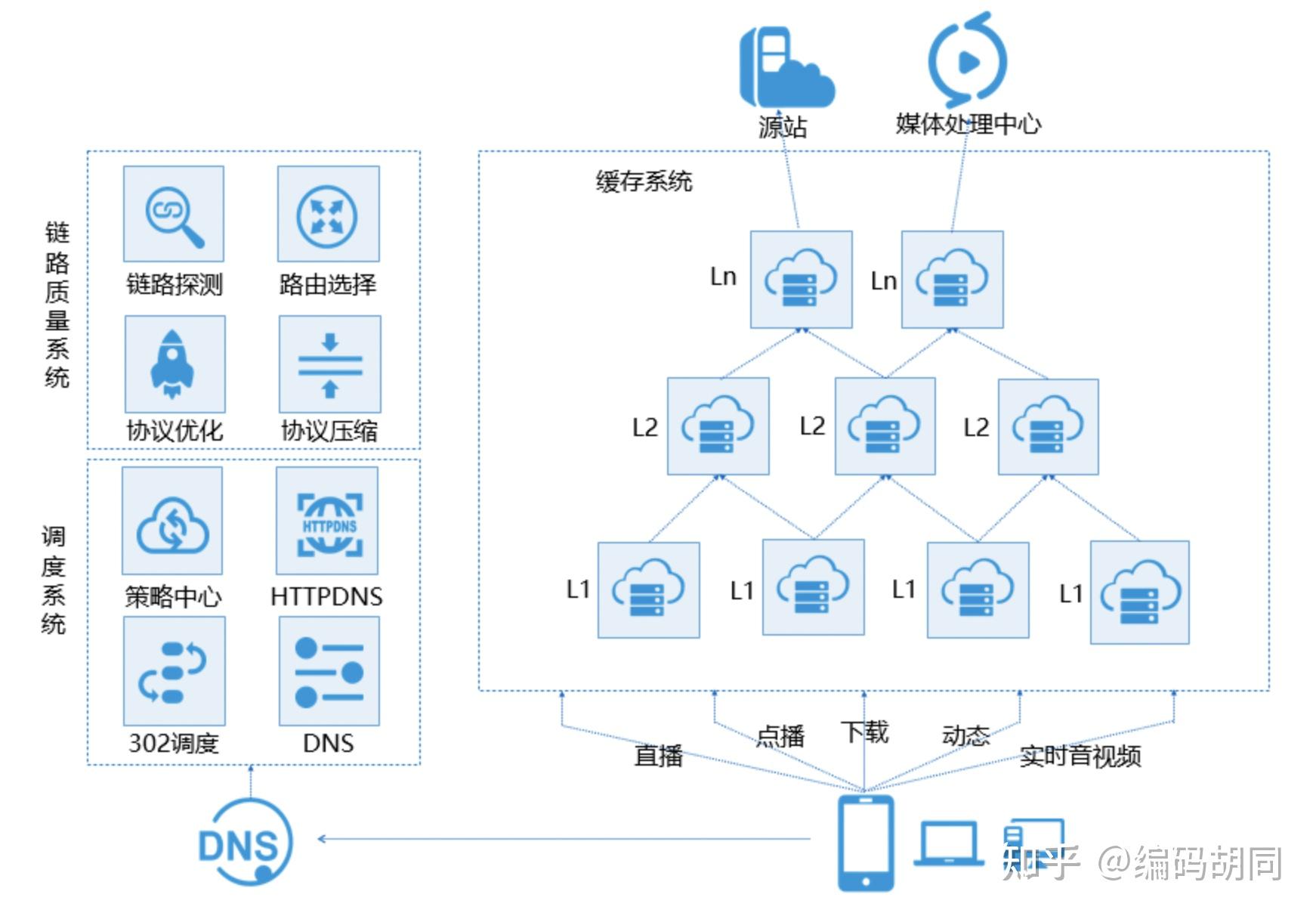 图片来自阿里云如图所示,CDN 就是一个分层的缓存系统(那些 L1、L2 可类比我们日常平凡开发用到的办事当地缓存、Redis 缓存,源站则相当于数据库系统),通过 DNS 调度战略为用户(客户机)供给一个离他比来的缓存办事器 IP,实现最快下载速度的同时减轻源站的压力。