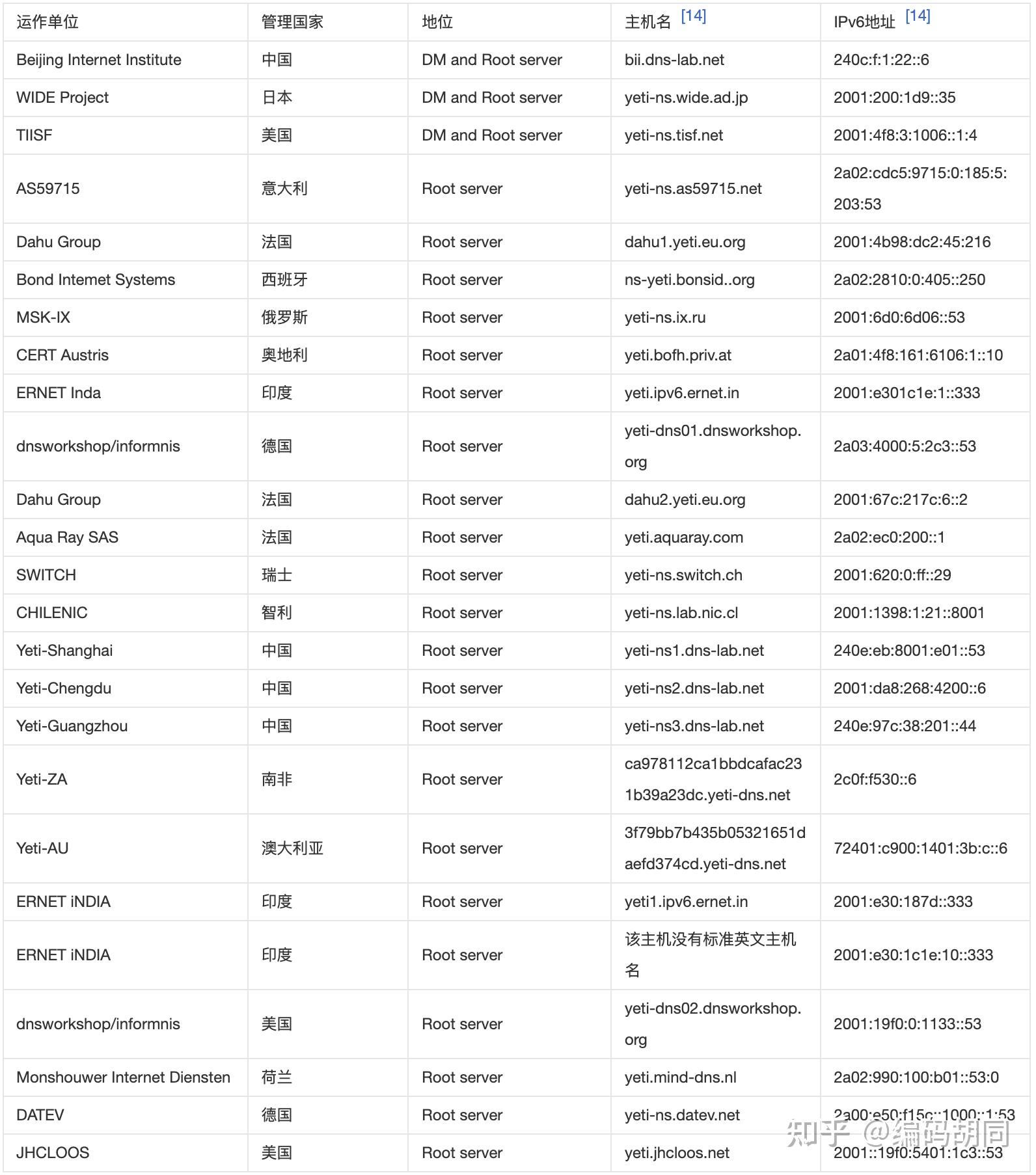 所以中国于 2015 年领衔倡议了雪人方案(其他倡议人还包罗日本的 WIDE 机构——M 根服的运营机构、域名软件之父保罗·维克西等人),面向全球招募 25 个根办事器运营意愿单元,配合运营 IPv6 根办事器。