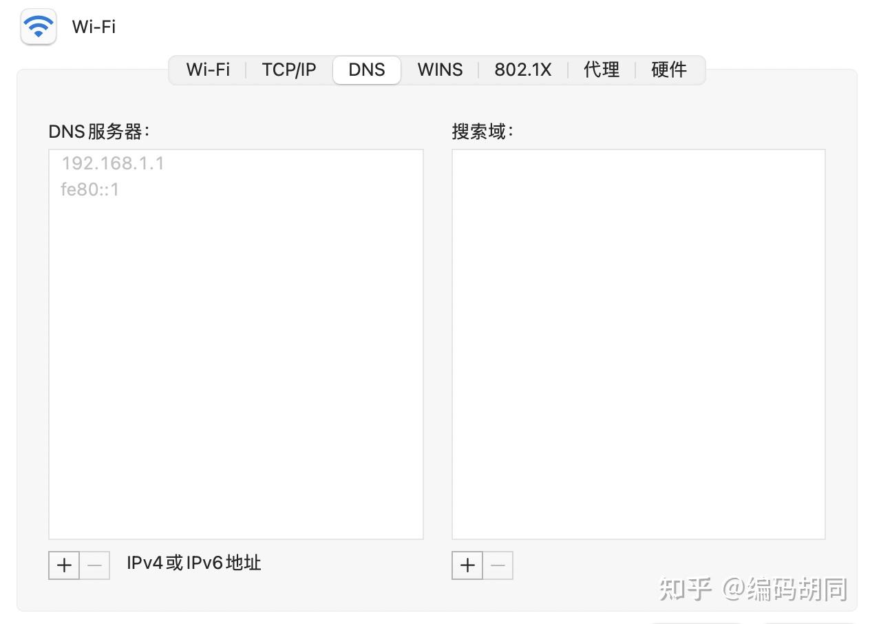 Mac 上在”收集偏好设置->高级->DNS“中: