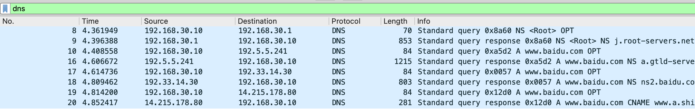 dig 一下:先在号令行用 dig 东西看下 www.baidu.com 的 DNS 解析过程:
