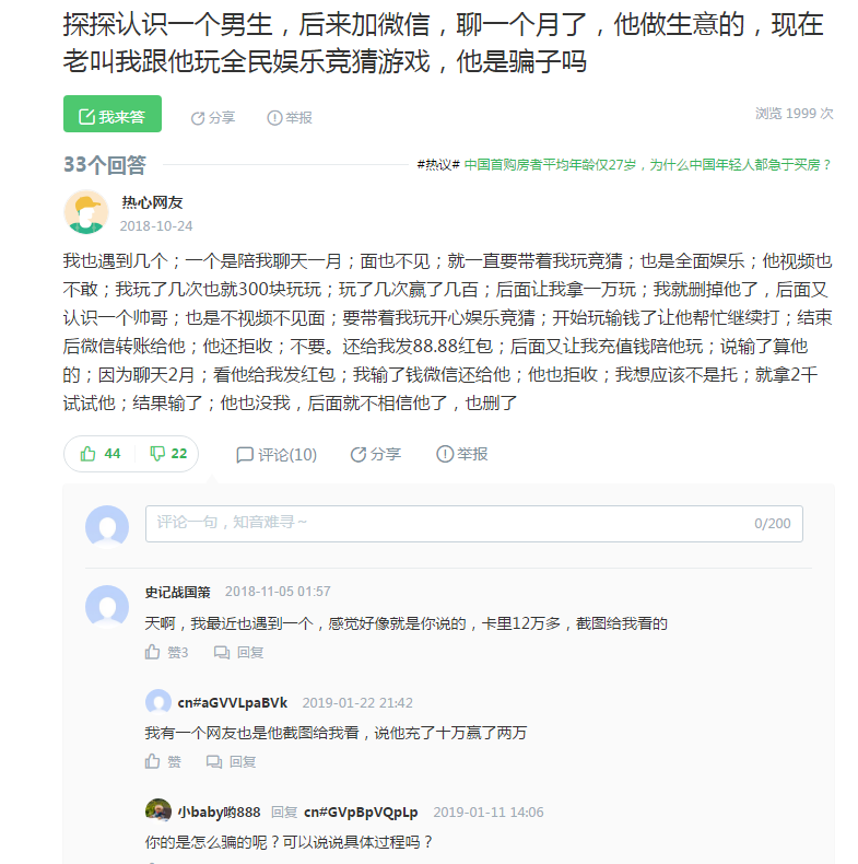 再者一个目生人在没有碰头之前表示得过于热情,总会让你觉得他背后有所诡计。然后我就在网上搜刮了一下关于微信竞猜的信息,哇跳出来大片大片的诈骗信息,觉得套路都是一个样。