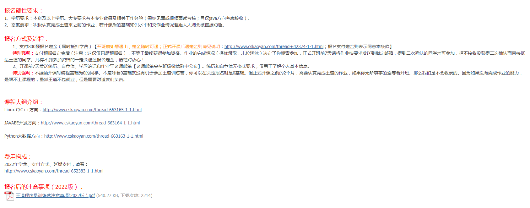 王道的膏火也是比力低的,Linux C/C++ 11600,Java 13800,和泰牛、尚马、大猿差不多,均低于S场价1/3摆布。如今课程多了Python大数据标的目的,膏火也涨了很多。Linux C/C++ 和 Java 都涨到了17800。Python大数据线上是9800,线下14000。固然仍是不高,但是三年涨4000-6000不算少了,课程周期应该有所耽误。