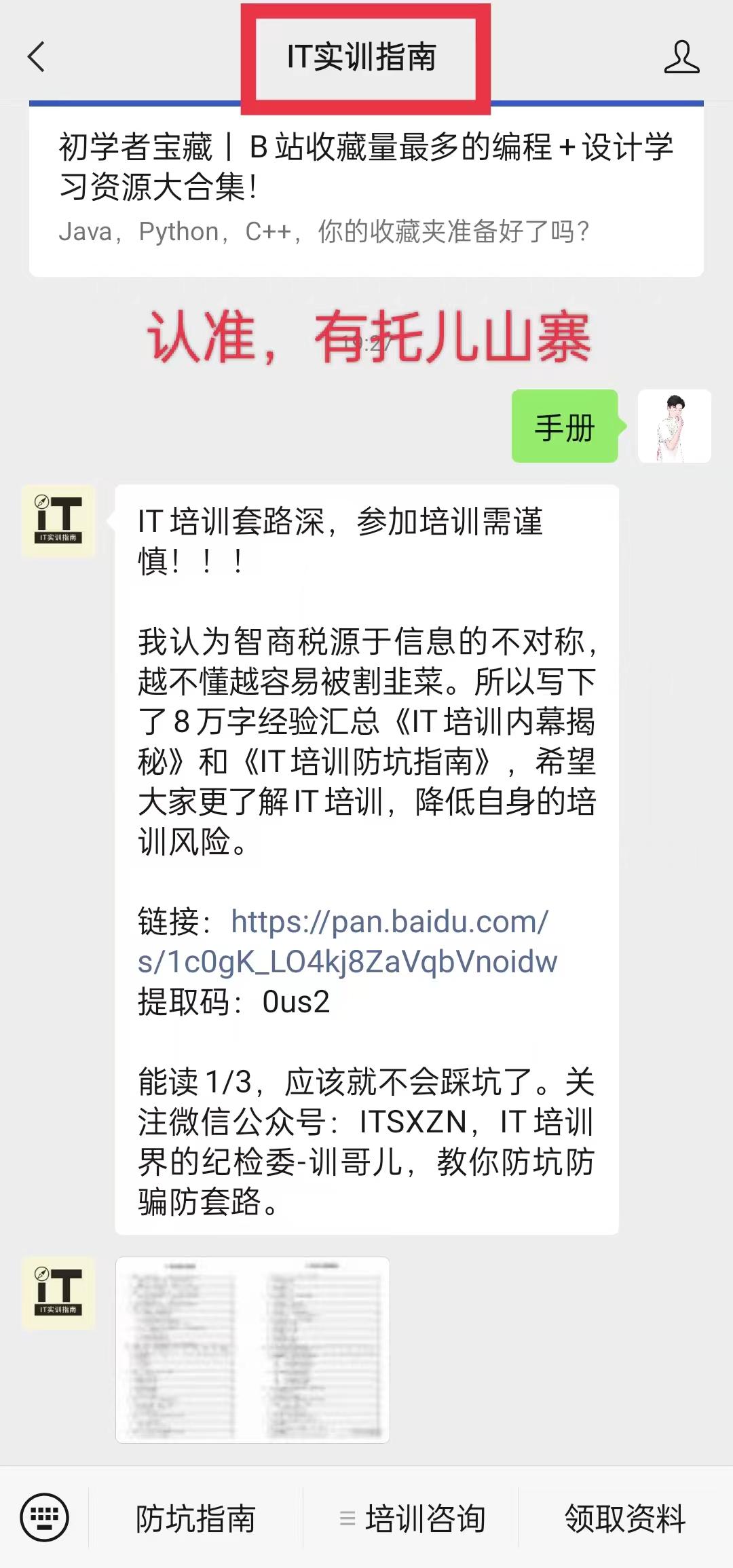训哥儿认为智商税源于信息的不合错误称,越不懂越容易被割韭菜。有些工具发上来就会被删,因而将本身的创做汇编成了《IT培训内幕揭秘》和《IT培训防套路手册》。需要的自取。就问那些机构和假拆反套路的托儿,敢不敢如许搞!!!