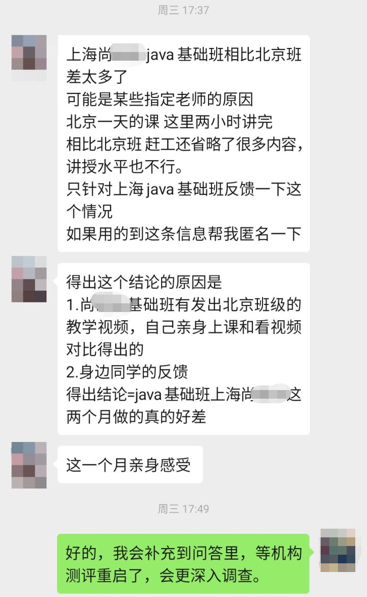 跟着摊子越来越大,我也确实陆续收到了一些负面反应。虽不多,但也有有理有据的。好比下图那条——课程内容不敷连系本地S场(说的是上海校区,因为上海是金融中心,而蜗牛的课程里缺乏金融项目,招致该学生在上海找工做其实不顺利)。