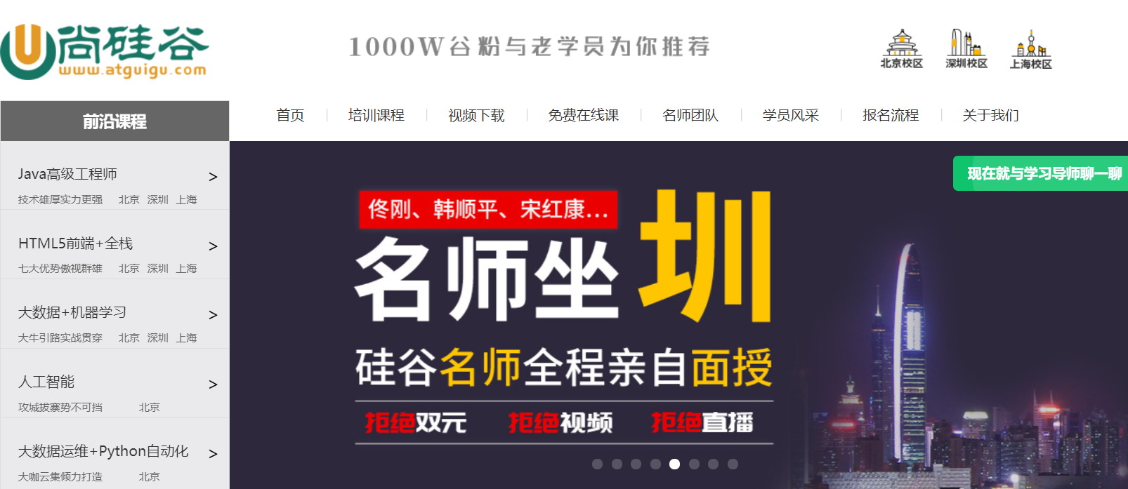 22年官网界面及课程在列举的几家机构里,尚硅谷是训哥儿最早晓得的。不外晓得的早不代表领会的多,因为在19年之前我并没有出格存眷过它,只是偶然听听业内八卦,好比哪家的名师又被尚硅谷挖走了(那两年尚硅谷疯狂挖名师)