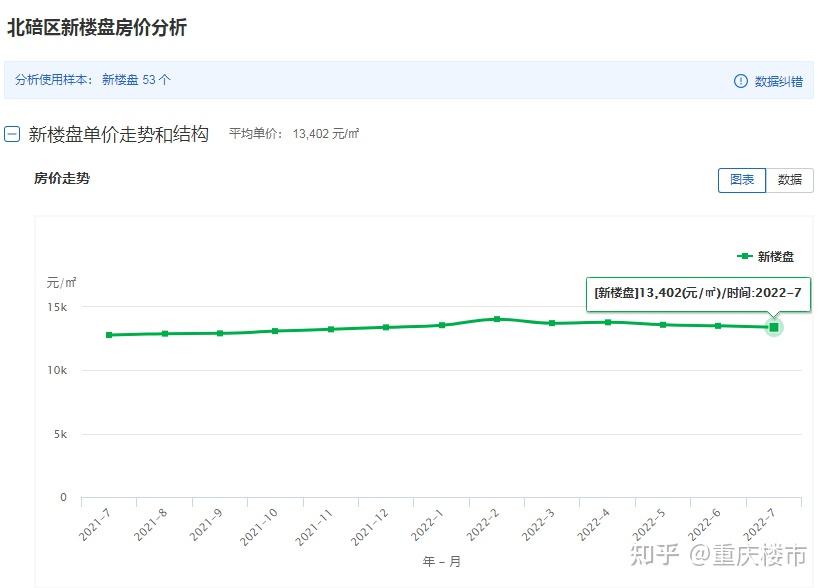下图是北碚区新房价格的走势图。