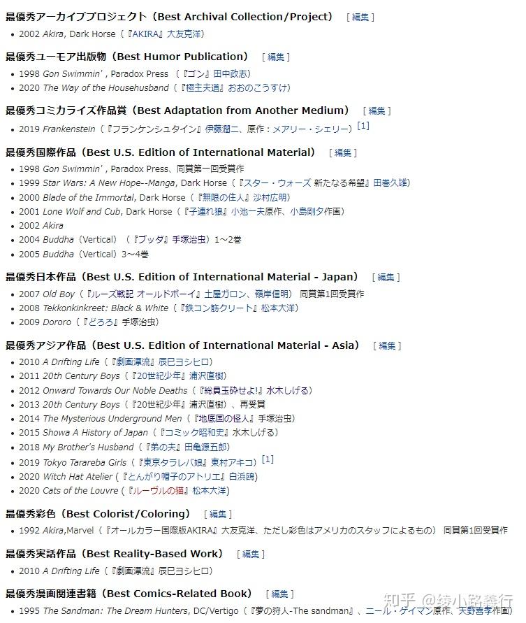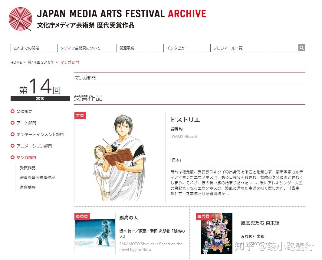 那张截图上的是2010年的获奖做品,岩明均的《汗青之眼》,坂本实一的《孤高之人》鲜明在列,那都是我看过之后,觉得相知恨晚的漫画做品。