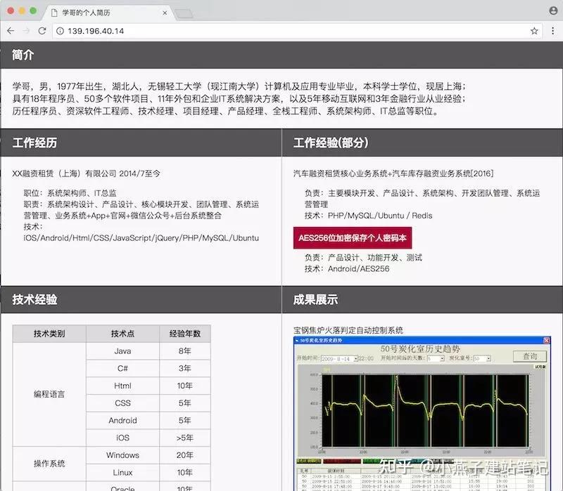 在当地计算机,翻开Chrome阅读器,输入网址http://云办事器公网IP地址,然后看到了小我简介网站了。