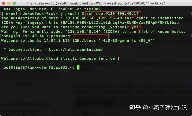第27步,若是在mac条记本里面,在“末端”法式间接运行号令 ssh root@云办事器IP地址,输入yes回车,然后输入密码回车,就能够登录到云办事器了。留意输入密码的时候是没有任何反响的,间接输好密码回车就行了。