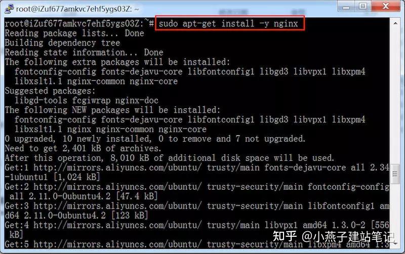 第34步,在#提醒符后面输入号令:sudo apt-get install -y nginx