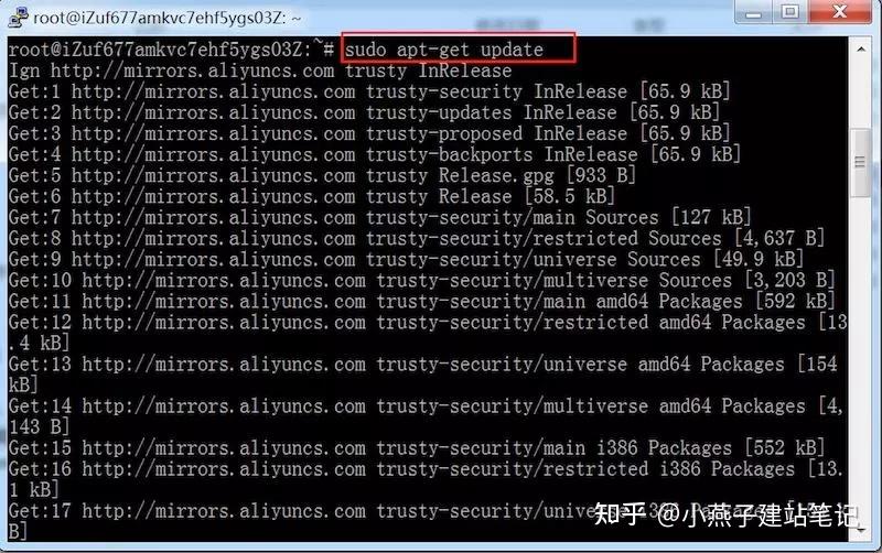 第33步,在#提醒符后面输入号令:sudo apt-get update