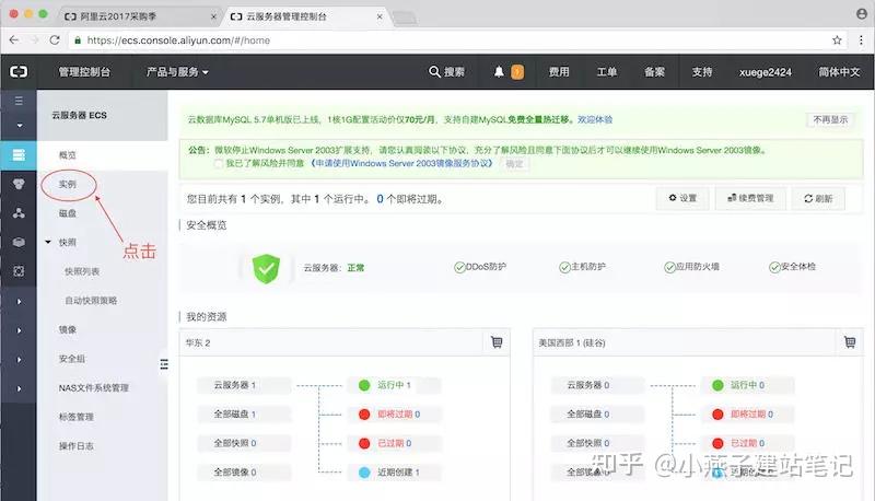 第25步,点击左侧菜单里面的“实例”,进入云办事器实例列表界面。