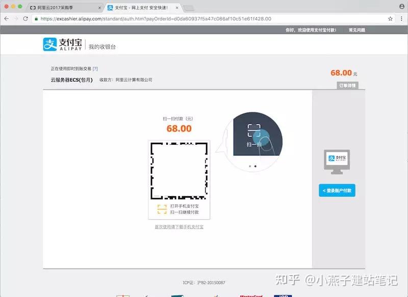 第21步,选择“付出宝”体例,点击“确认付出”按钮,进入扫码付出页面。