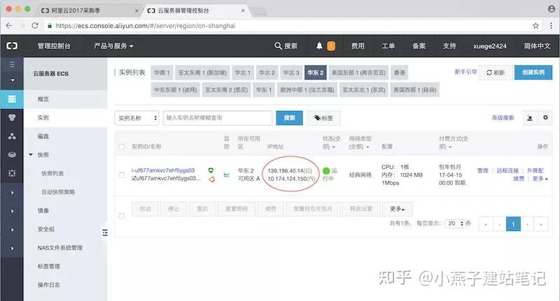 查看到IP地址那一栏里面上面一行的“139.196.40.14(公)”,那个就是云办事器在互联网上的公网IP地址。后面登录进入办事器需要用到那个地址。旁边的形态一栏里面显示绿色的“运行中”,则暗示该办事器已经启动,能够一般利用了。