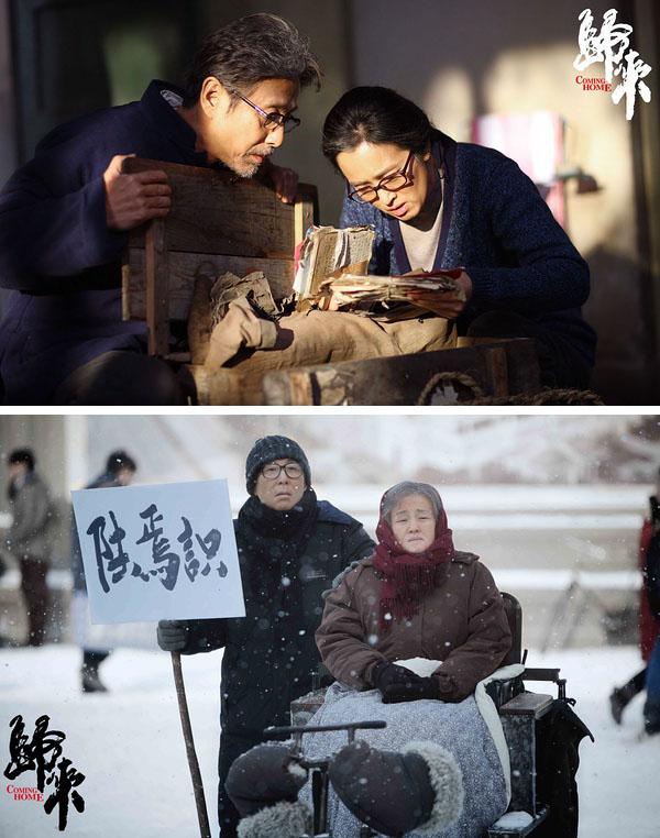 《归来》中,张艺谋洗尽铅华,回归更能凸显片子时代的浅灰色系摄影,不复昔时《英雄》那样处处张扬的浓墨重彩。