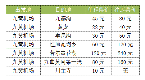 Tips: 九黄机场位于高原地带,碰到气候原因(例如冬季降雪),可能会停航,建议旅客的回程时在交通上多做筹算。