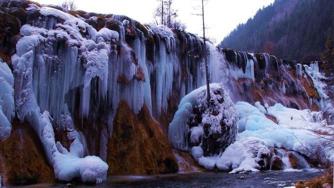诺日朗瀑布是中国大型钙华瀑布之一,比珍珠滩瀑布要宽上100余米,也是中国最宽的瀑布。瀑布飞流曲下,声势浩荡,“诺日朗”在藏语中是伟岸高峻的意思,瀑布的壮不雅可想而知。隆冬时节那里则会呈现奇特的冰瀑奇景。