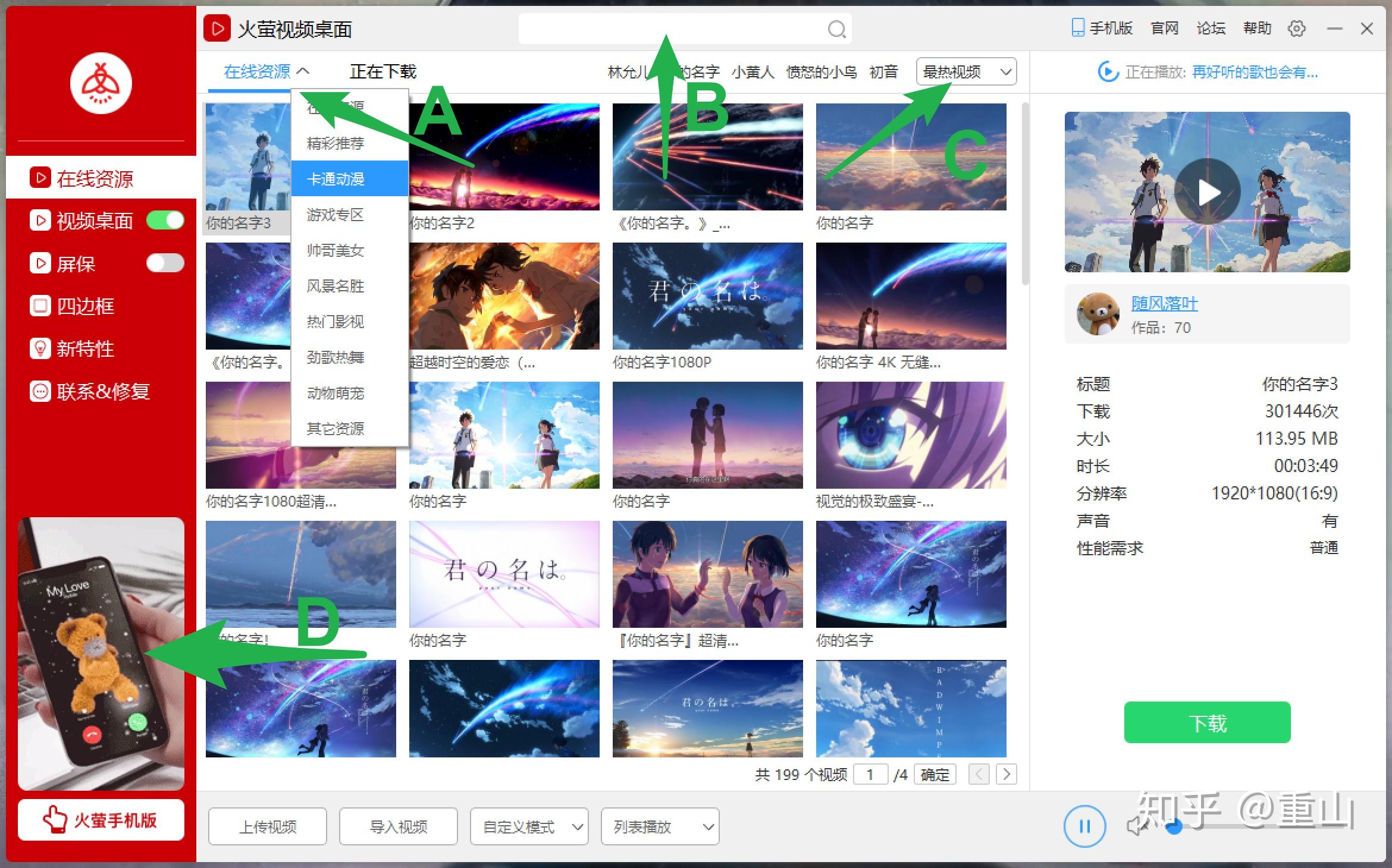 根本利用办法 看下图: A是资本区 B是搜刮框 C是排行 D是告白区(有一说一不影响利用)
