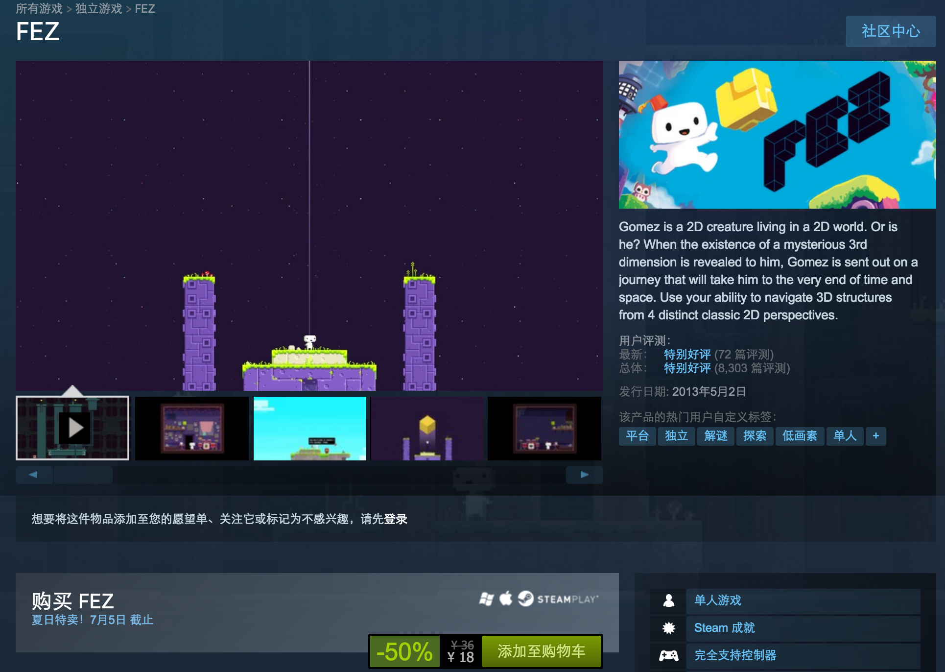 固然不想说,但是 FEZ 甩纪念碑谷几条街。