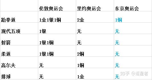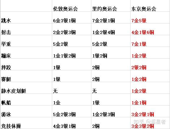 以下是对我国在各个项目上表示的阐发,鉴于项目数量过多,接纳表格形式呈现(比照近三届奥运会):