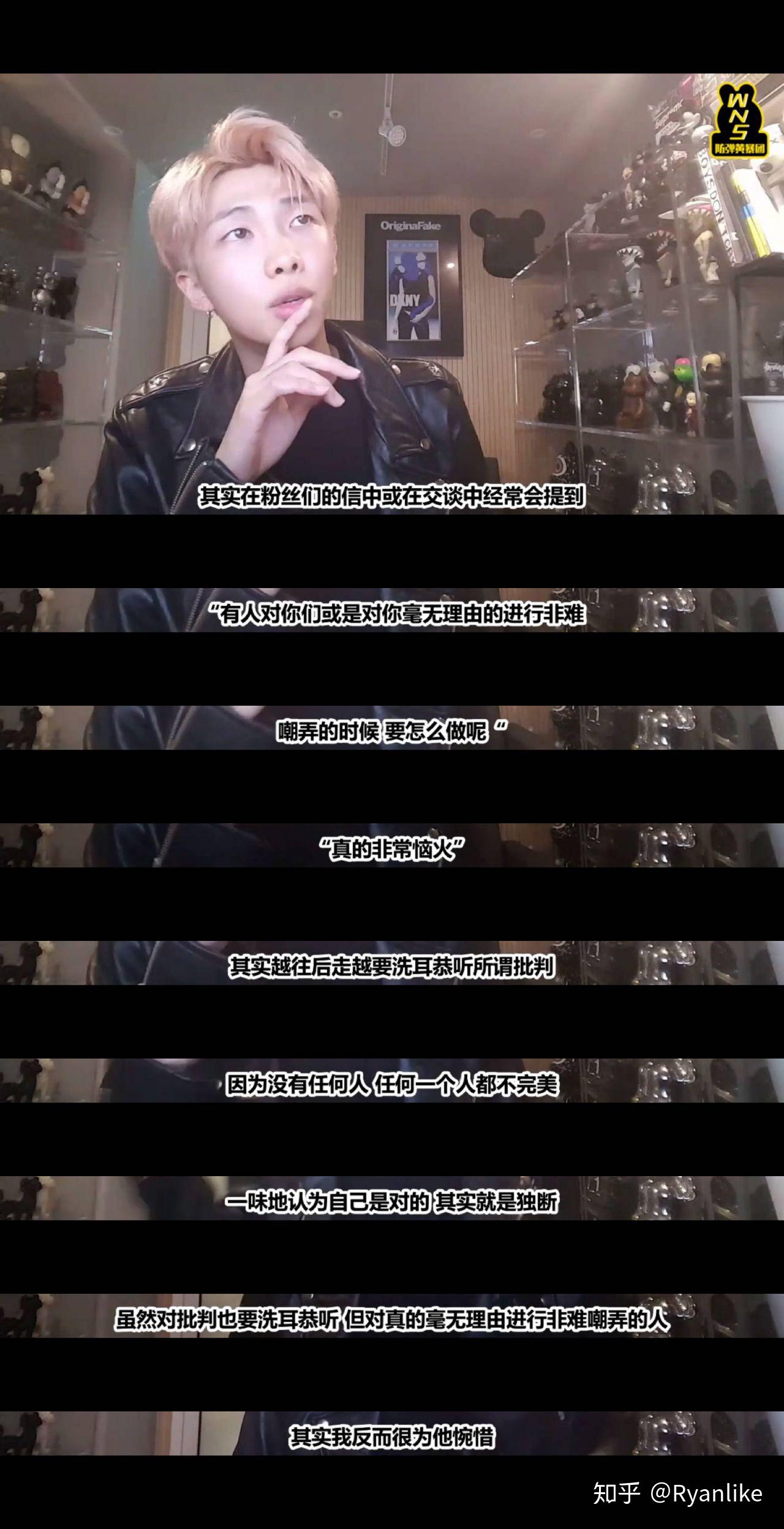 金南俊本人看得开 但是那话我多希望他不懂 他的歌词从早期的崭露头角到如今的没必要报歉 我实高兴他能那么想