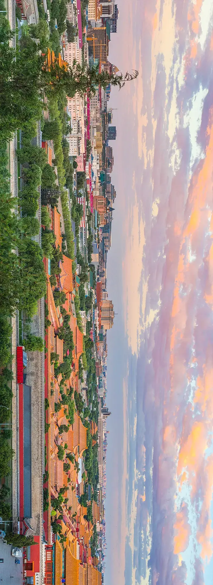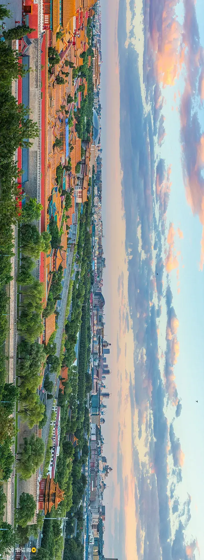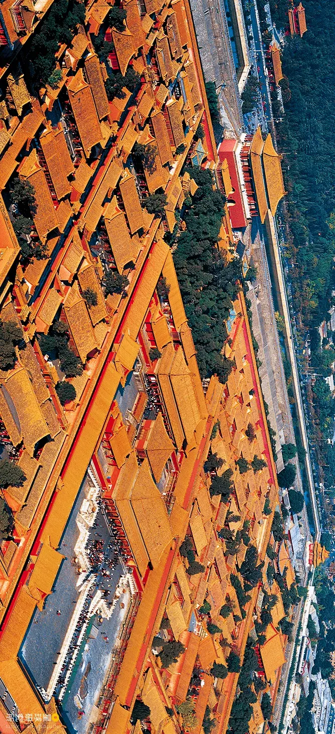 在景山之上回望那座城金黄的瓦、墨红的墙汉白玉的阶、琉璃瓦的顶一重又一重的宫苑那即是登峰造极的“宫殿之海”(从景山俯瞰紫禁城,请横屏旁观,摄影师@柳叶氘)▼