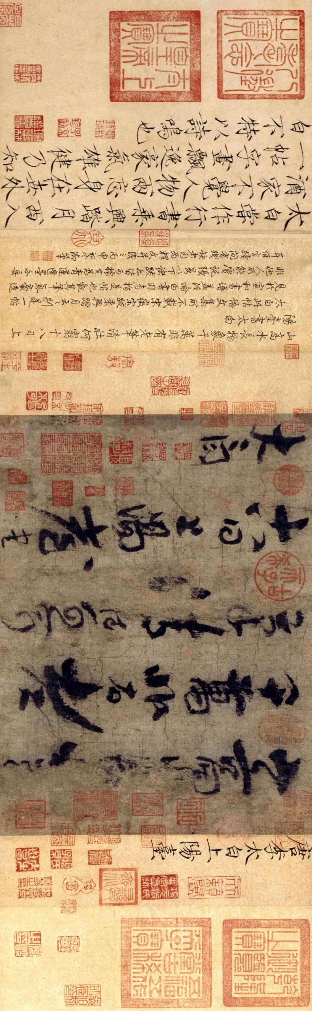 唐李白的《上阳台帖》等(请横屏旁观,故宫博物院所藏的《上阳台帖》,图片源自@Wikimedia Commons)▼