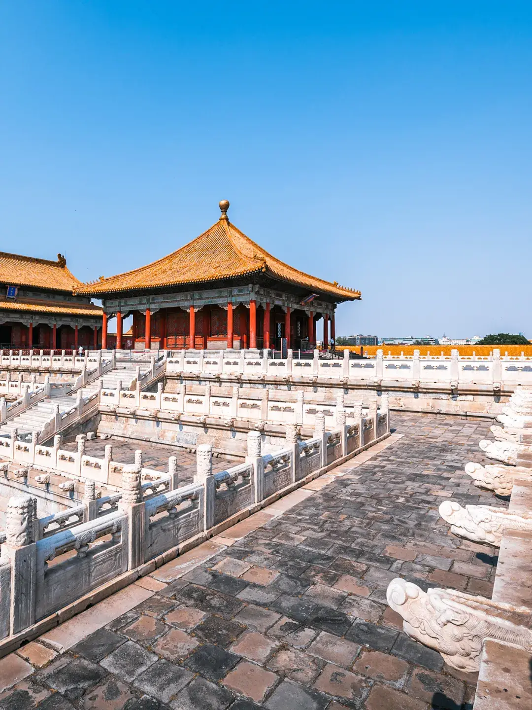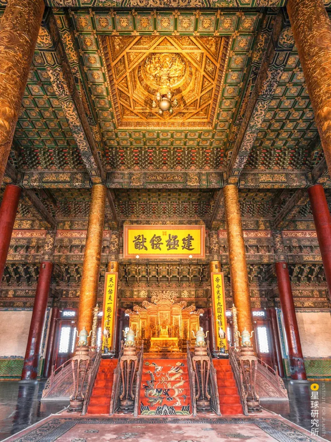 为首的太和殿是紫禁城中更高大的宫殿建筑从空中到屋顶更高处约为35.05米相当于12层楼高(太和殿,摄影师@李睿)▼