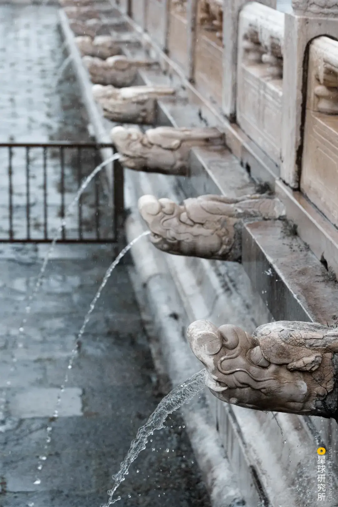 基座四周还安插了设想巧妙的兽首兽嘴中空,用于排水每逢雨天三层基座上的上千兽首便会上演一出“千龙吐水”蔚为壮不雅(雨后的三大殿基座,摄影师@柳叶氘)▼
