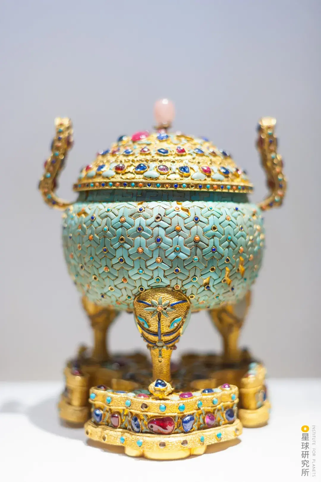 现在全国文物保藏单元保管的一二三级珍贵文物的41.98%都在故宫陈列又将故宫化做“文物之海”(故宫博物院所藏的清金嵌宝石炉,前人在书案上用炉焚香,认为文雅,摄影师@柳叶氘)▼
