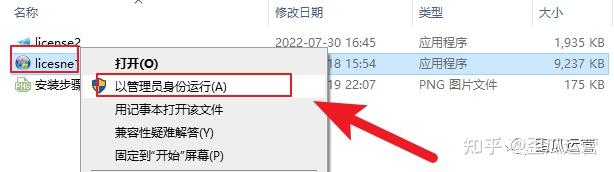 ②那时翻开解压后的文件夹,选中并鼠标右击【License1】,选择【以办理员身份运行】即可。