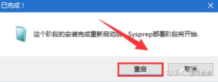 13.面板上提醒【已完成!】后,此时可间接拔掉U盘,然后点击【重启】按钮即可。
