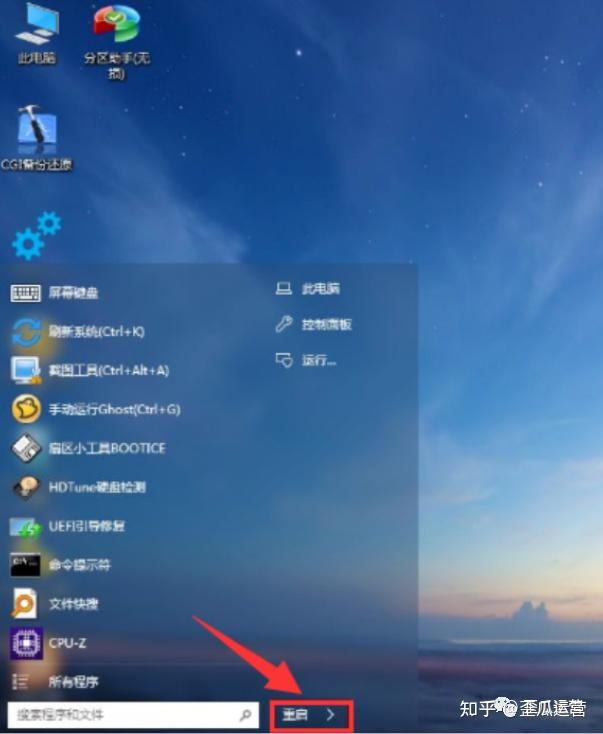 14.若点击【重启】后电脑未能呈现主动从头启动,各人点击电脑左下角重启按钮手动重启。