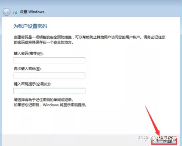 18.各人设置密码(开机时也需要此密码,不输入密码可设置开机无需密码),然后点击【下一步】。