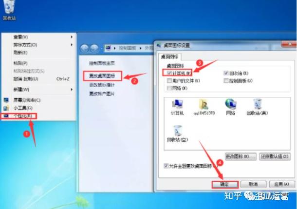 24.起首我们翻开计算机桌面图标,在桌面空白处鼠标右击,选择【个性化】按钮,然后点击【更改桌面图标】,间接勾选【计算机】,然后点击【确定】按钮即可。