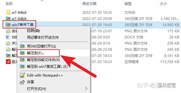 ①翻开U盘所在位置,鼠标选中【win7激活东西】压缩包右击,选择【解压到win7激活东西】即可。