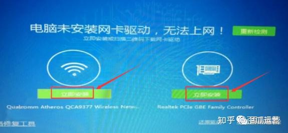 ③再点击【立即安拆】(右边是无线网卡驱动,右边是有线网卡驱动),各人在安拆完成即可联网。