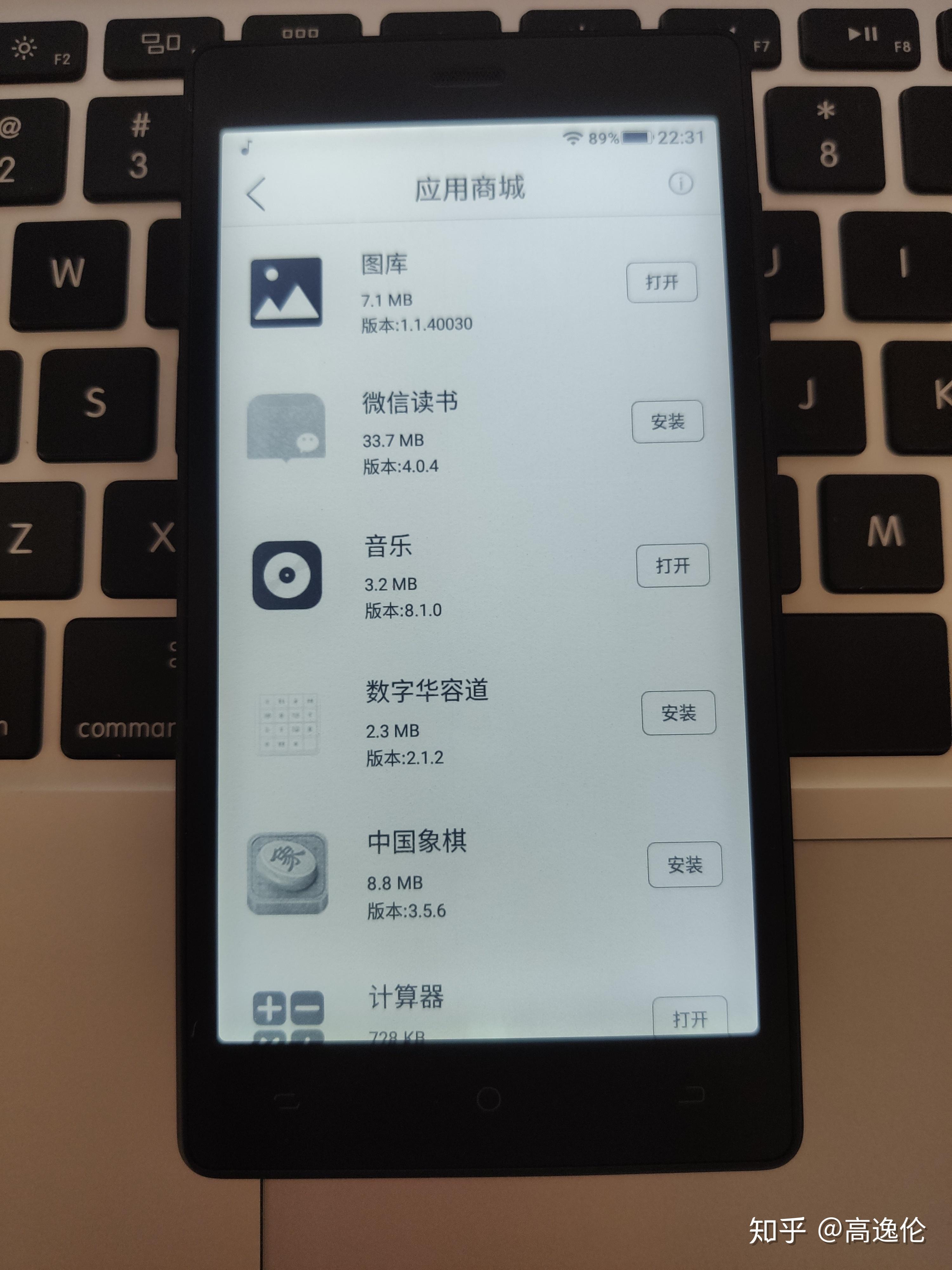 应用中心中,只能下载厂商适配了E-ink屏幕的app,好比和QQ阅读同门的微信阅读,也能够下载图库在黑白情况下阅读图片、设置锁定壁纸。计算器能够停止简单的计算操做。还有一个学英语的app和数字华容道、中国象棋两款单机游戏。没有时钟、日历。