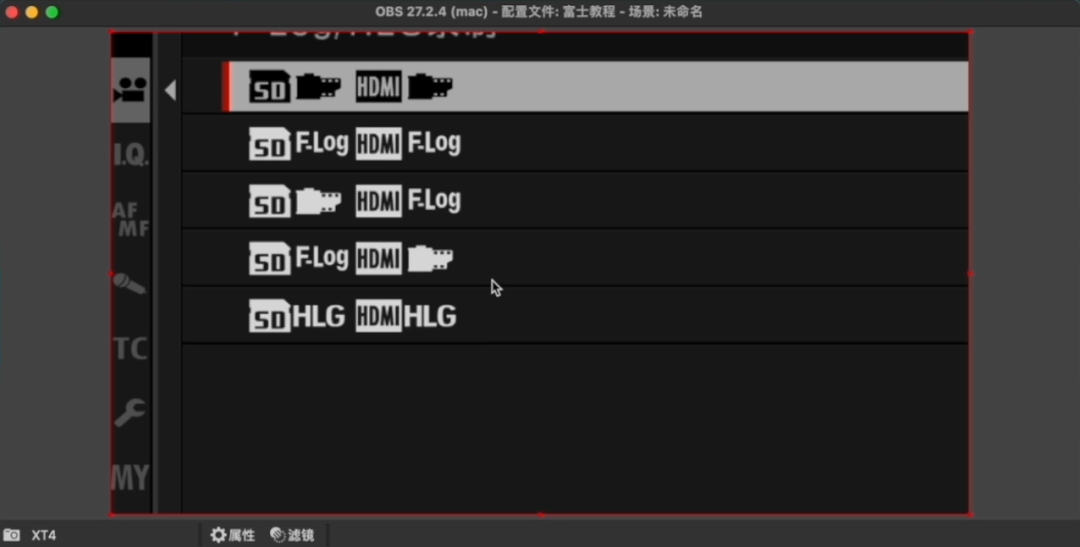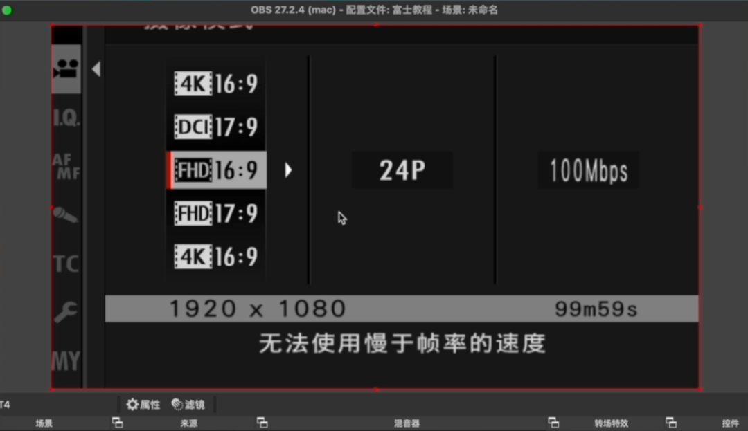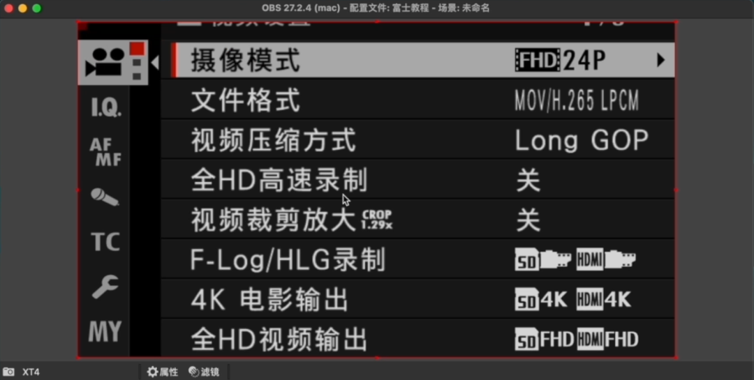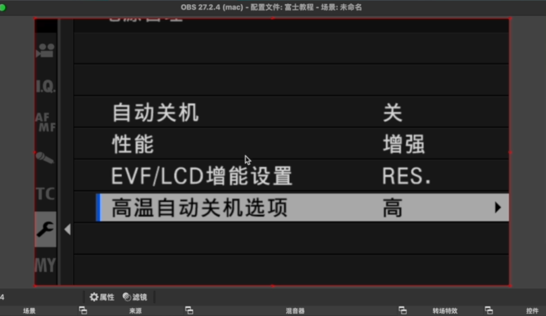 在第一次将富士相机毗连上OBS软件时,我们在OBS界面看到的画面应该是如许子的:它会带有那个相机自己的参数。取决于我们的利用场景,那可能是我们想要的,也可能不是我们想要的。