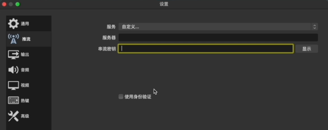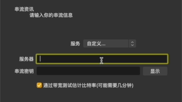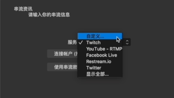 可间接选择“自定义”办事,然后再设置装备摆设串流密钥。完成后即可进入主页面。