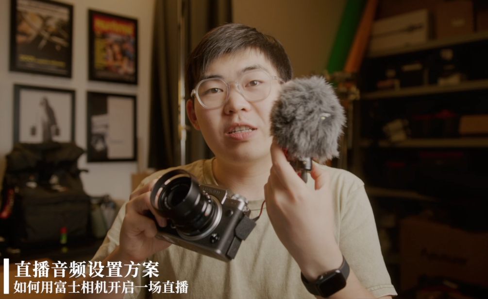若是你有一个机头麦,就能够把那个麦克风间接插到富士相机的机身上面。