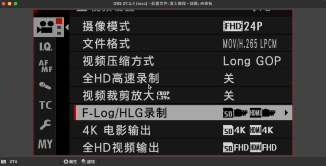 6. 停止富士相机的设置:调整HDMI输出信息展现、相机格局帧率、F-Log/HLG录造选择,并封闭主动关机;