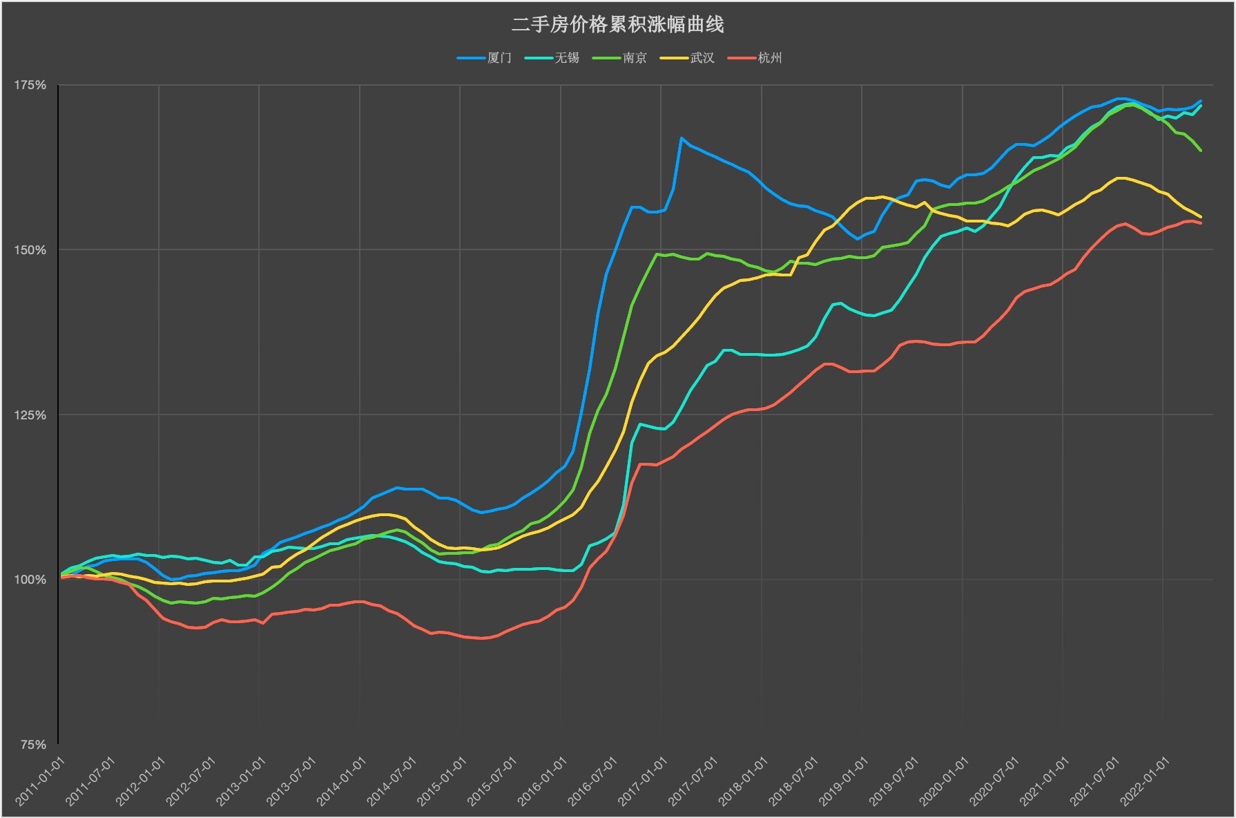 厦门、无锡、南京、武汉、杭州