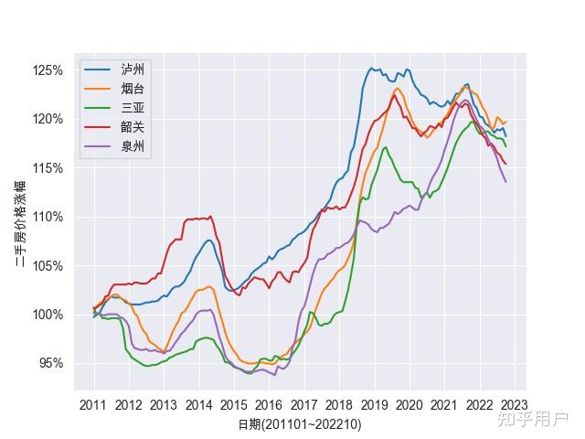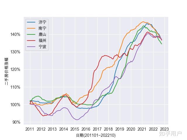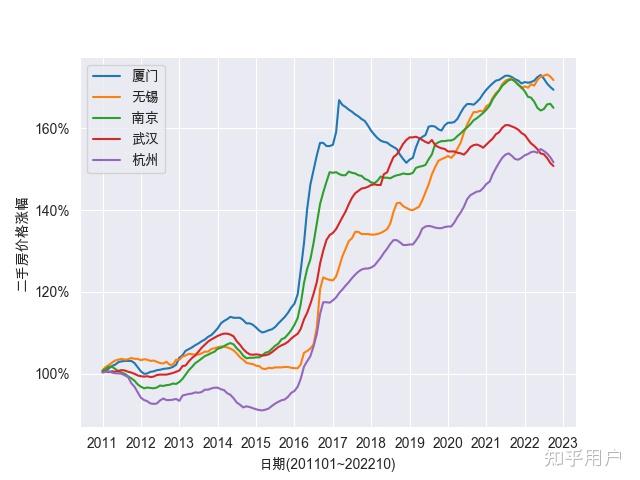 从2011年-2022年,整体上,大城S的房价涨幅在1.8摆布,中等城S的房价涨幅在1.5摆布,小城S的房价涨幅在1.2摆布。 深圳的新房和二手房的涨幅 > 2.5,大幅超越北上广那三个一线城S,领冠全国。 温州的房价履历了一个下降到暖和上涨的过程,整体房价和十年前根本持平。在各个城S间,也是一个奇特的现象。 房价在14年起头呈现了一波下降,在15年摆布因为货币化棚改政策起头起飞;17年中起头控房价后房价增幅放缓。 房价增幅上,新房和二手房整体差别不大,根本趋向连结一致。一线城S、新一线城S、二线城S房价曲线