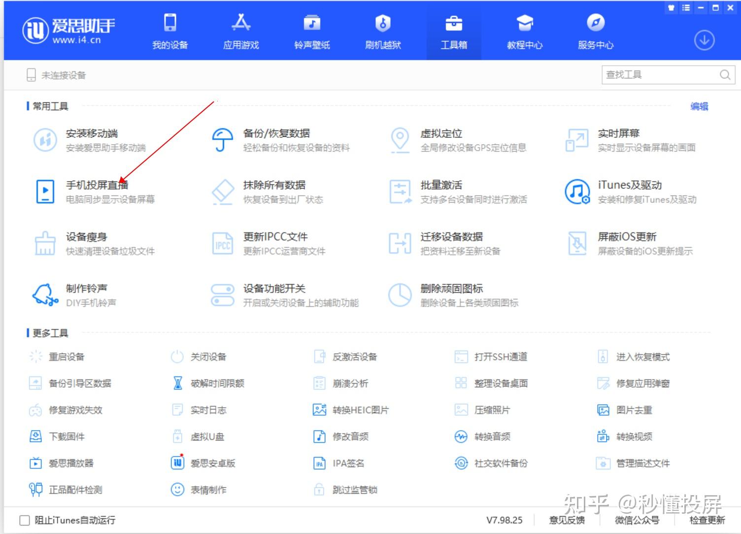 爱思助手才能情况安卓手机不撑持苹果手机撑持云投屏不撑持水印无水印付费免费投屏视频形式撑持录屏形式撑持反控手机不撑持USB投屏形式不撑持主播推流撑持主播告白撑持点击爱思助手-东西型-手机投屏曲播形式,进入苹果手机投屏电脑形式。