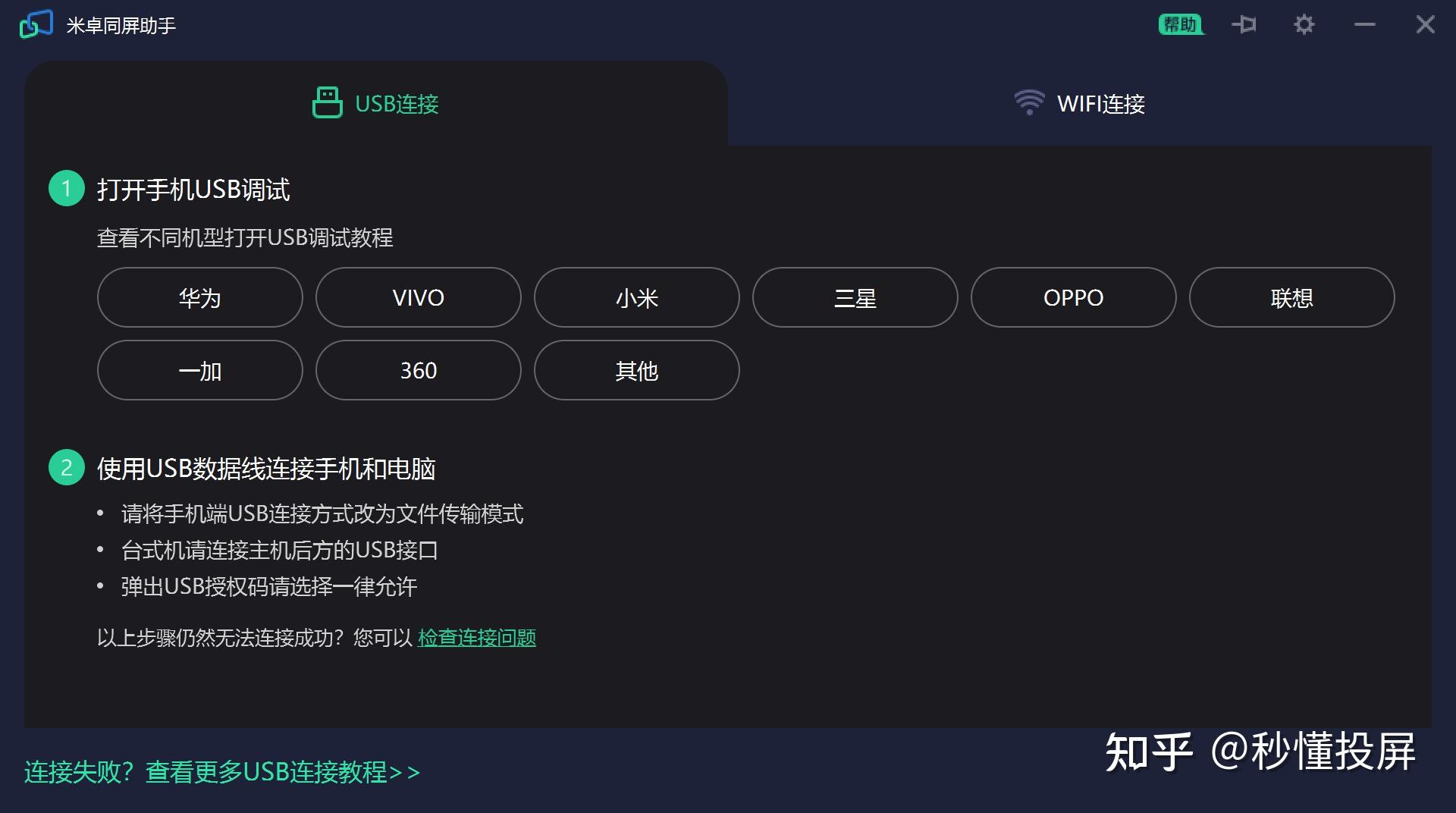 五,米卓同屏助手-只要安卓手机版点评:也是新出的一款,目前只撑持安卓设备,撑持反控,撑持录屏。撑持USB和WiFi毗连形式,毗连过程比力复杂。帧率和分辩率能够自在调理。不撑持云投屏和视频投屏形式。