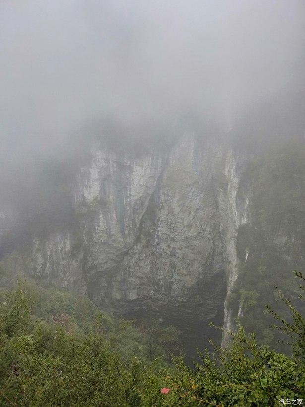全国第一缸。气候欠好,雾气腾腾,看不出来它的气焰。深达300多米的庞大石缸。