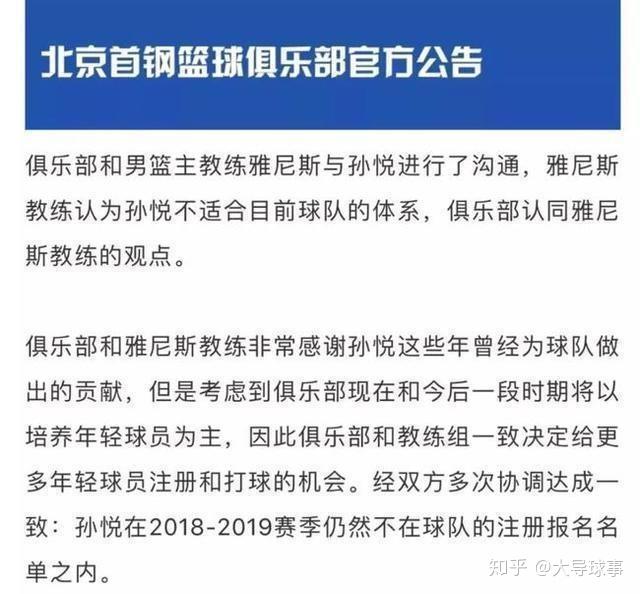 2018年,歇息了一个赛季的孙悦北京首钢还有一年的合同,而33岁的孙悦主意向北京队递交了归队申请函,却不意北京首钢颁布发表了本赛季孙悦继续不在CBA注册,那意味着孙悦将持续两个赛季不打CBA。