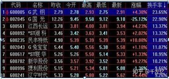 第一步、每日收盘后对换手率停止排行,察看换手率在6%以上的个股。